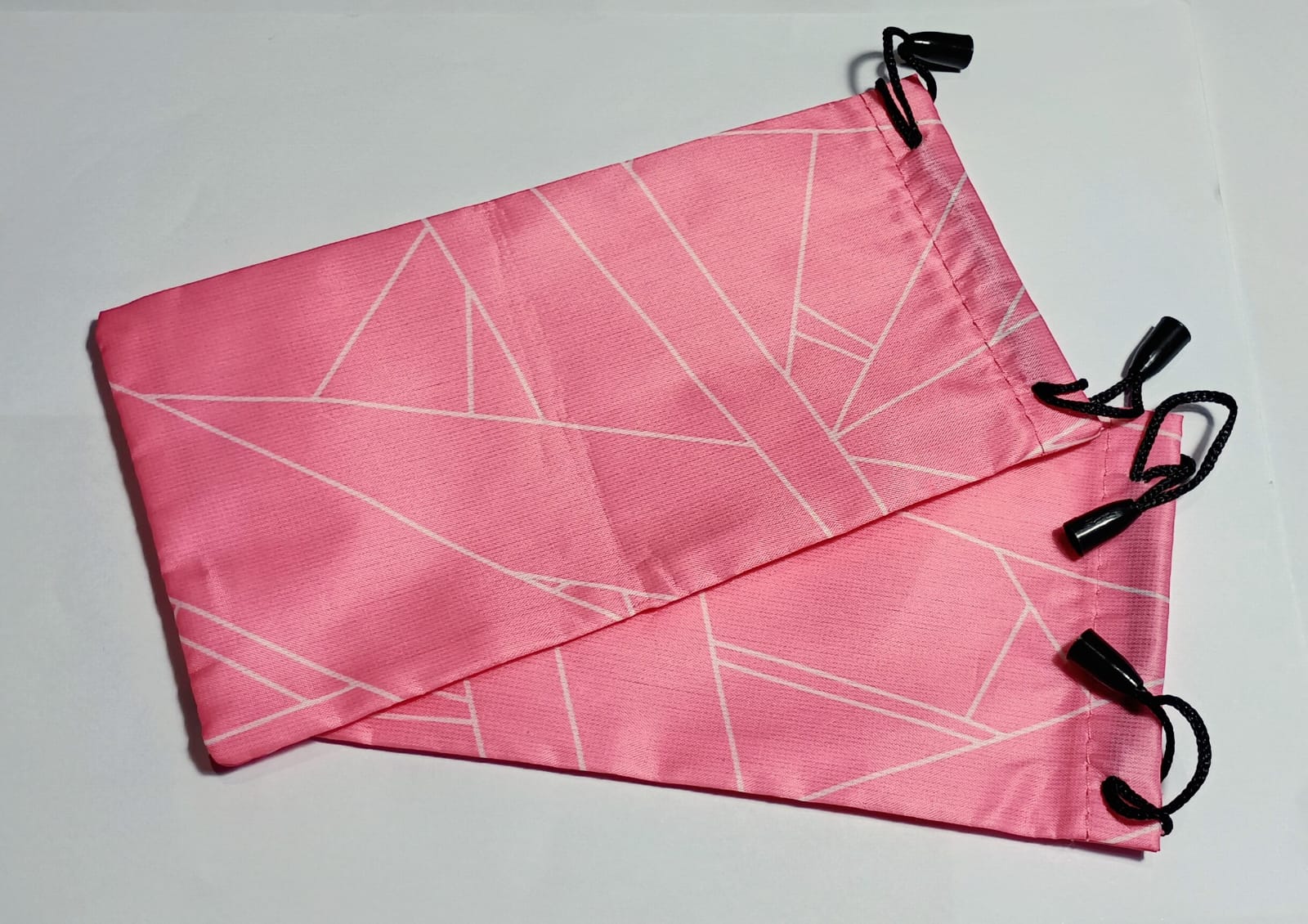 1 Estojo rosa para óculos com fio de ajuste e trava plástica para fechamento seguro.